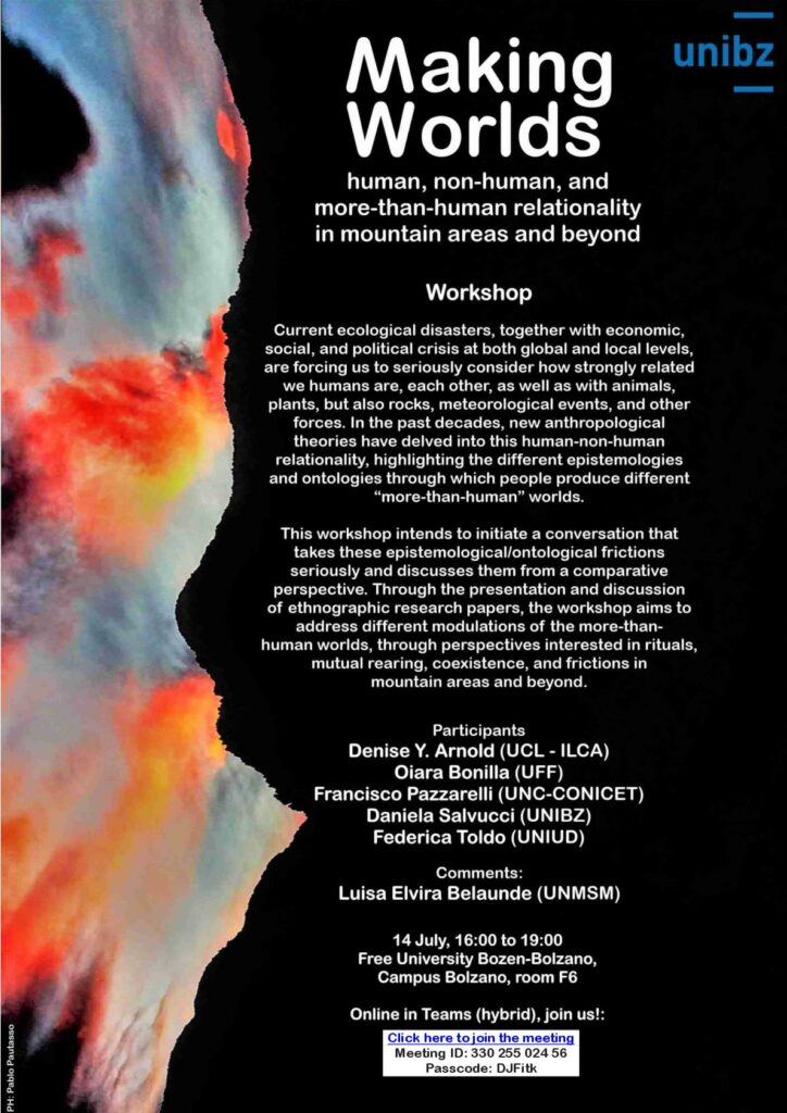 Gli incontri seminariali esplorano la possibilità di mettere in relazione le esperienze socioculturali delle e degli abitanti di zone montane differenti, tanto dell’area alpina quanto di regioni extra-europee. Le relatrici e relatori invitati presenteranno e discuteranno le proprie ricerche sugli aspetti antropologici, storici e geografici delle diverse culture dei popoli di montagna riflettendo sul valore della prospettiva comparativa e discutendo questi temi con il pubblico.